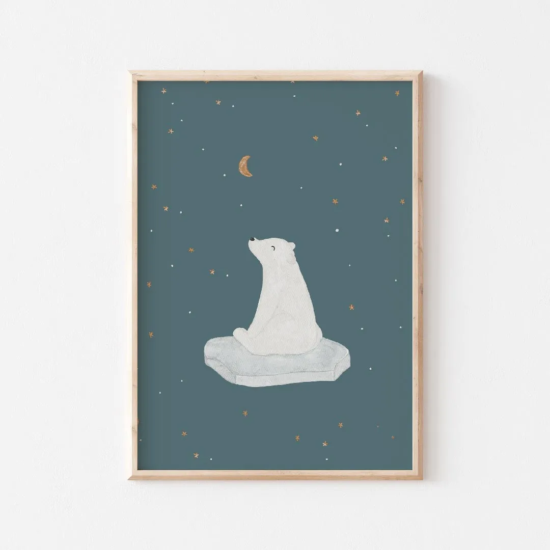 Affiche Enfant encadrée, Ours Polaire Nuit
