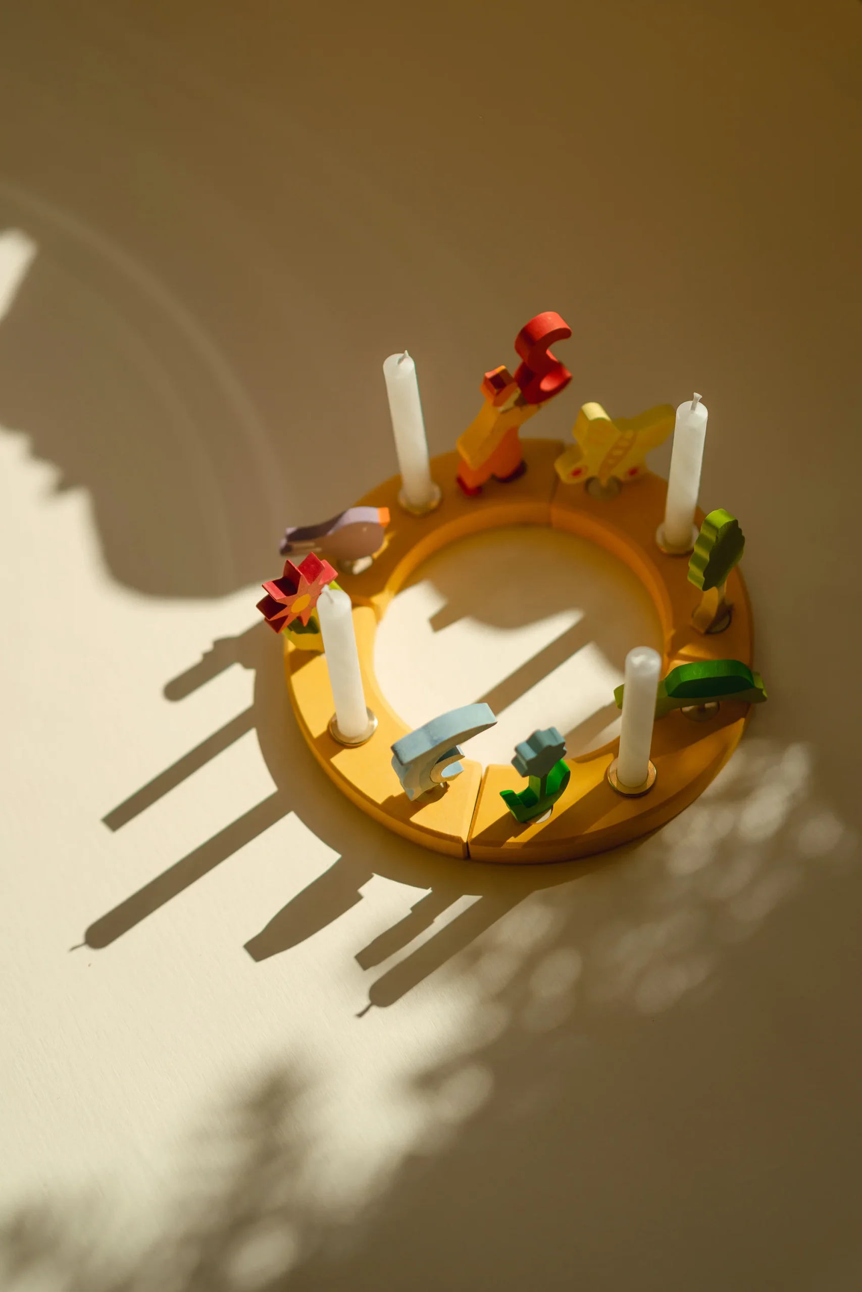 Grimm’s 12 year Wooden Birthday Ring is wonderful for birthday tables, for decoration on a window-sill and on the nature table.
