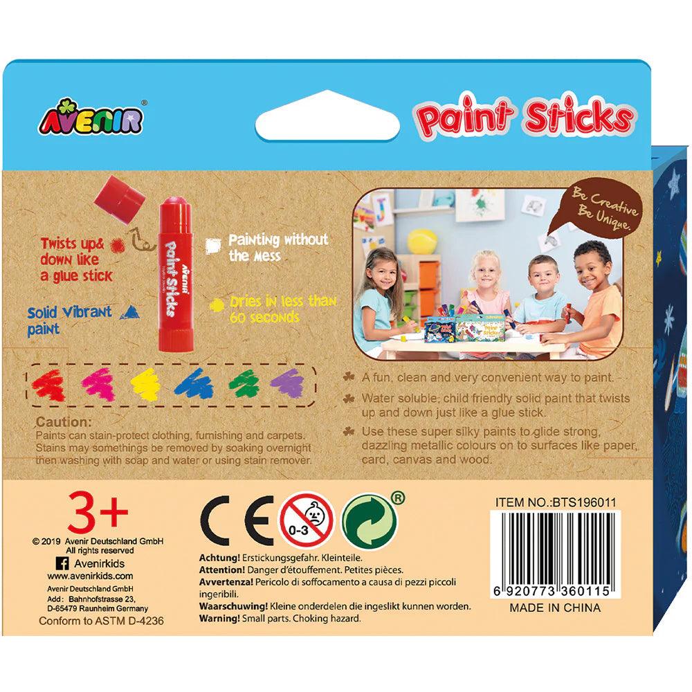 Geen water of borstels betekent geen rommel en geen gedoe. Bovendien droogt de verf in minder dan 60 seconden. Paint Sticks draaien open als een lijmstift en zijn gemakkelijk vast te pakken door kleine handjes.