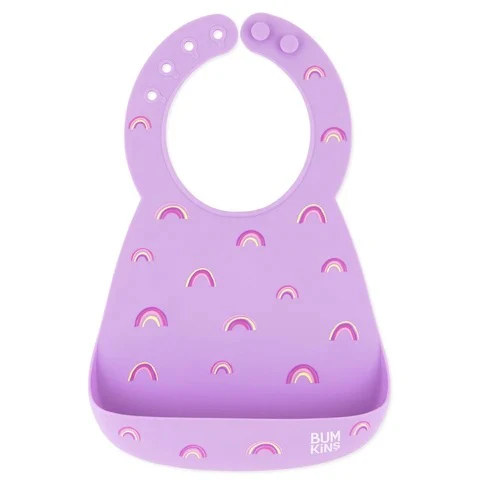 Colorez l’amusement à l’heure du repas avec ce bavoir orné d’adorables arcs-en-ciel. Le bavoir en silicone Bumkins est idéal pour réduire les dégâts au moment des repas. La grande poche fourre-tout est grande ouverte pour attraper les gouttes, les gouttes et les déversements avant qu’ils n’atteignent les genoux de bébé ou le sol. Commencez à l’utiliser lorsque bébé commence à manger des purées baveuses, puis passe à des aliments solides autoalimentés, en ajustant les boutons du cou au fur et à mesure qu’ils grandissent. Le bavoir est fabriqué à partir de silicone platine flexible, durable et sans danger pour les aliments qui se nettoie rapidement et facilement et peut même aller au lave-vaisselle ! Le silicone est également naturellement résistant aux bactéries et à la plupart des odeurs et des taches, ce qui en fait un choix sûr et hygiénique pour les bébés en désordre.