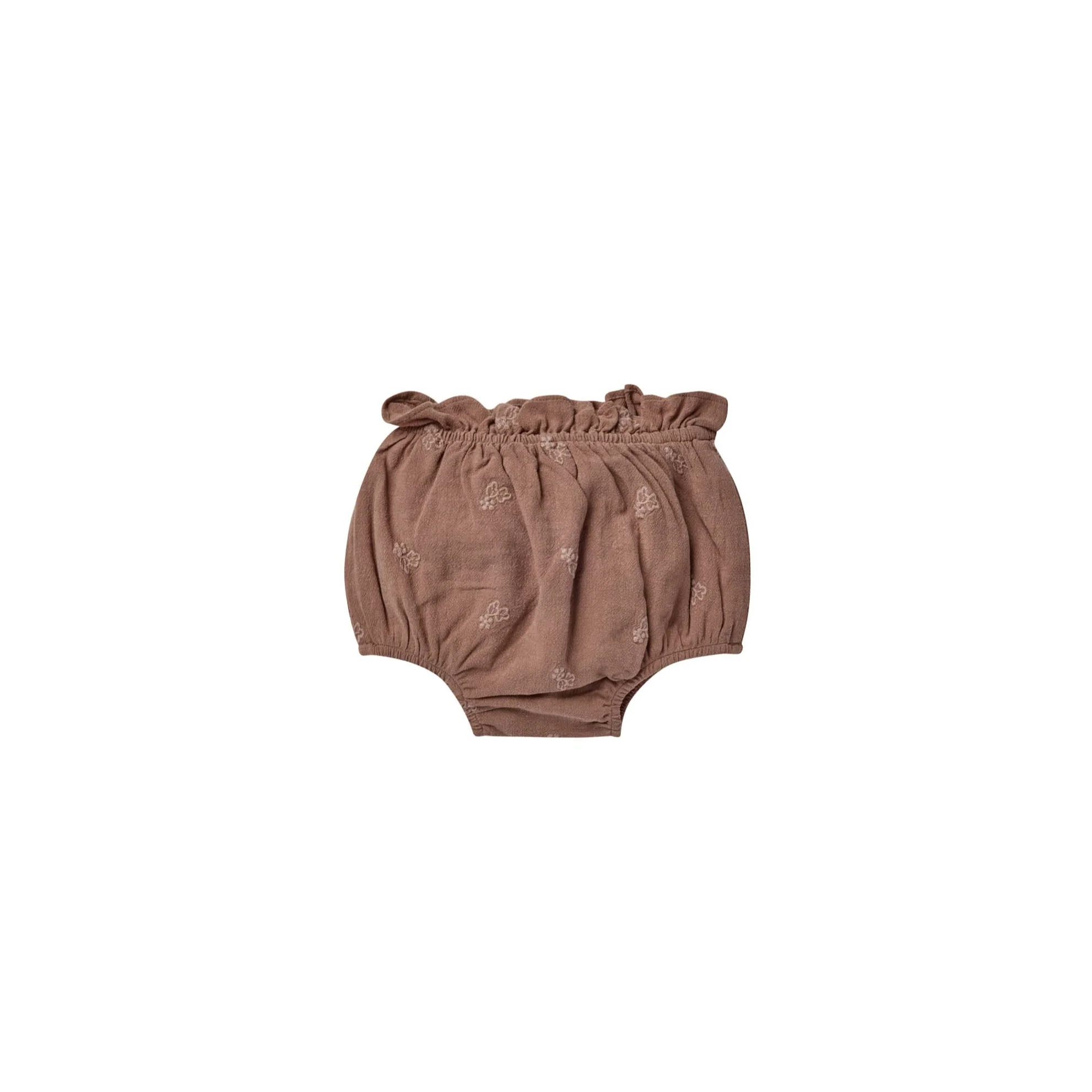 Bloomers featuring an elastic waist with ruffle edges and a sweet bubble silhouette.