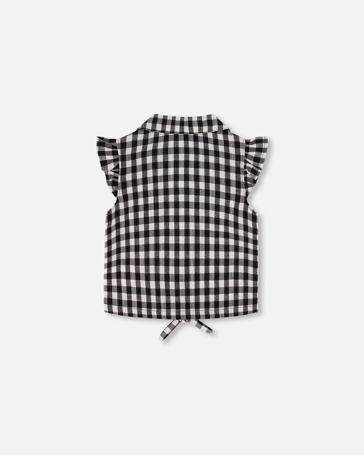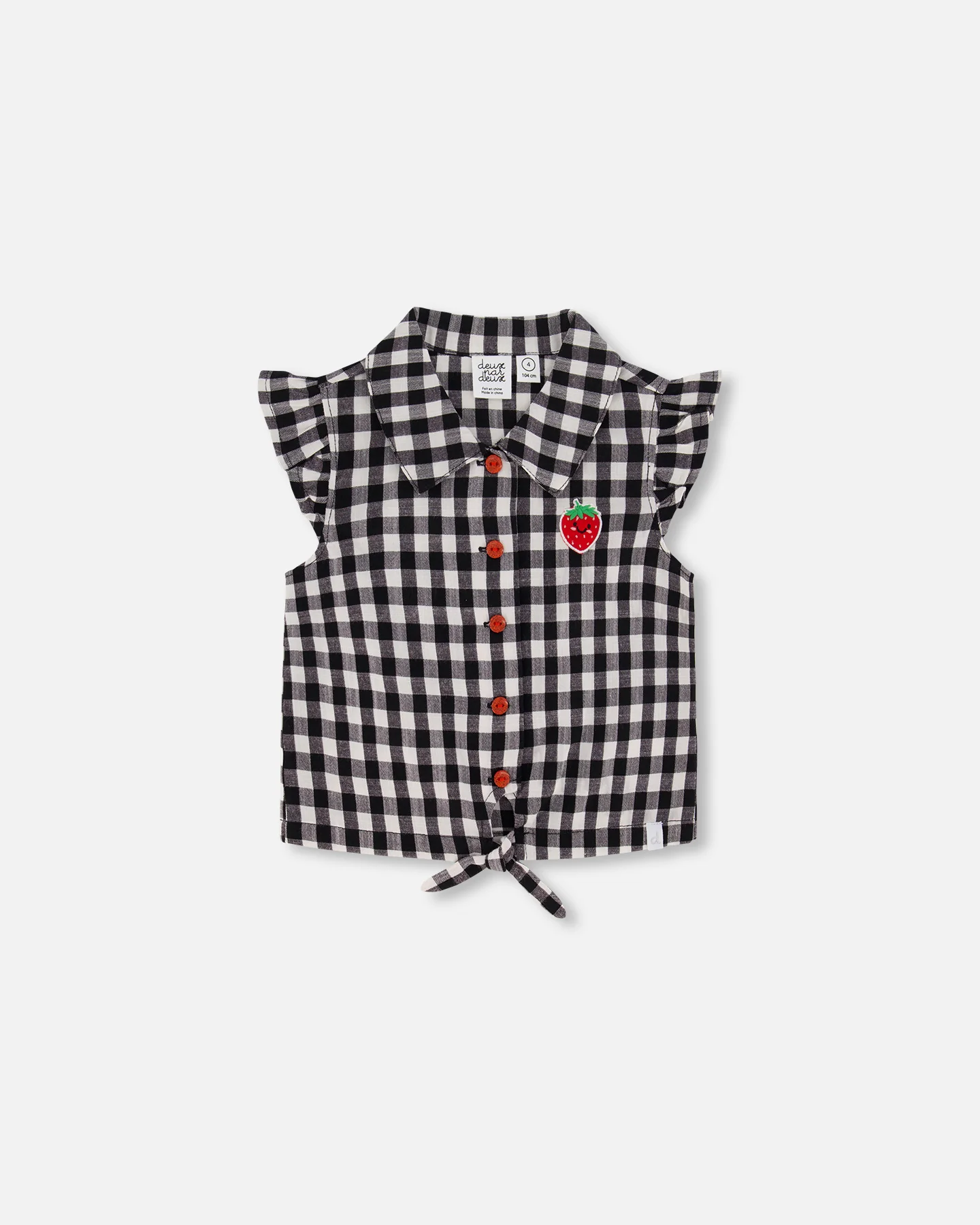 Blouse avec noeuds petit vichy noir et blanc – F30K15-029 – 2 à 10 ans