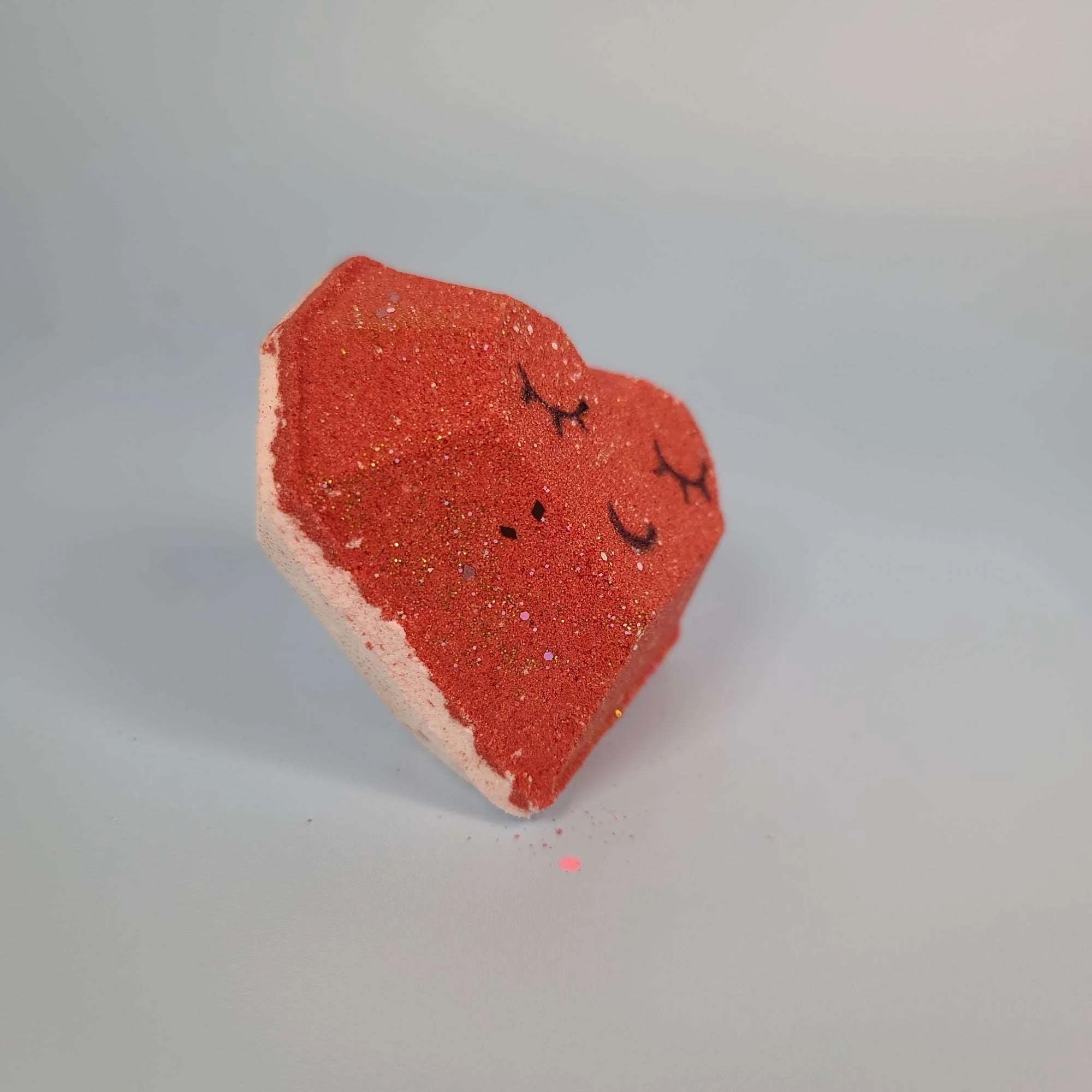 Bicarbonate de soude, acide citrique , crème de tartre, brillant écologique biodégradable, huile de pépin de raisin, eau hamamelis, polysorbate 80(émulsifiant alimentaire), flagrance, colorant, beurre de cocoa, sodium lauryl sulfoacetate.