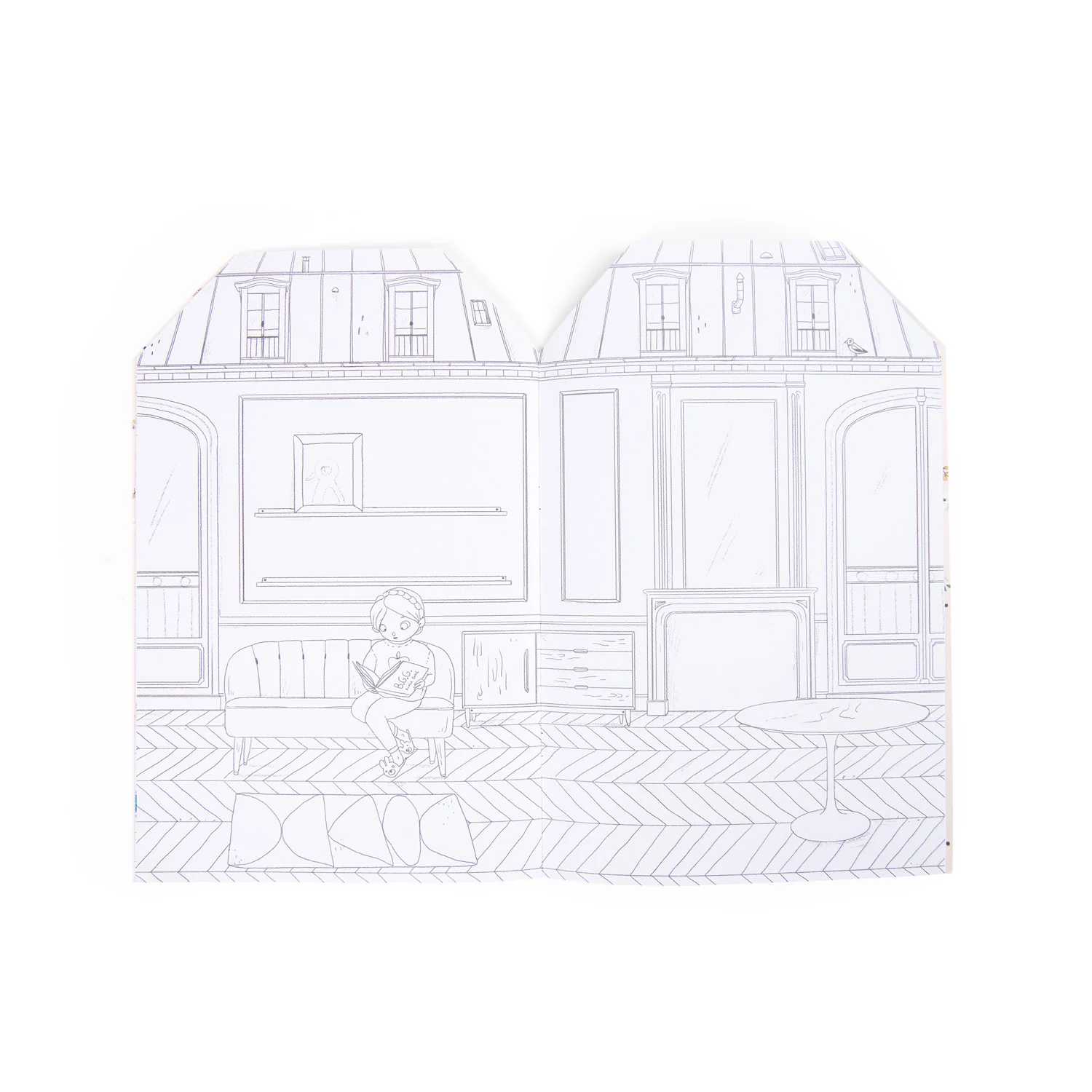 Un livre de coloriage de 20 pages avec de délicats croquis au crayon, illustrés par Lucille Michieli, représentant une variété de scènes qui peuvent prendre vie grâce à 145 autocollants colorés. 5 planches d’autocollants mettant en scène des animaux, des objets, des meubles et des plantes pour créer un univers.