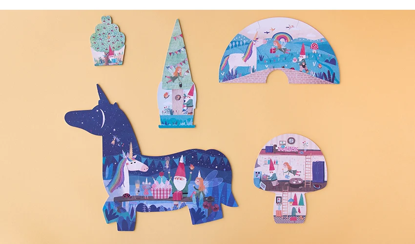 5 puzzles progressifs réversibles (de deux à dix pièces) pour que les plus jeunes découvrent une belle histoire d’amitié.