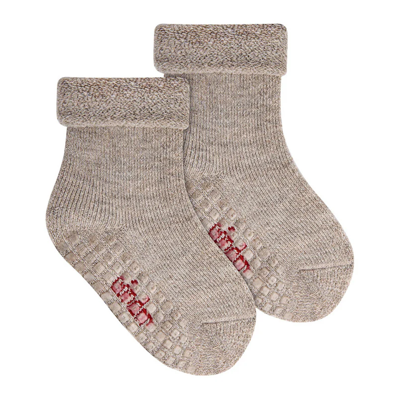 Chaussettes courtes en éponge de laine à revers replié.