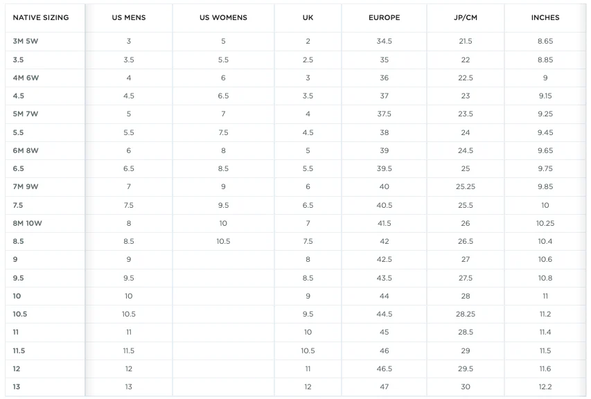 - NB: Les demi-pointures n’existent pas.