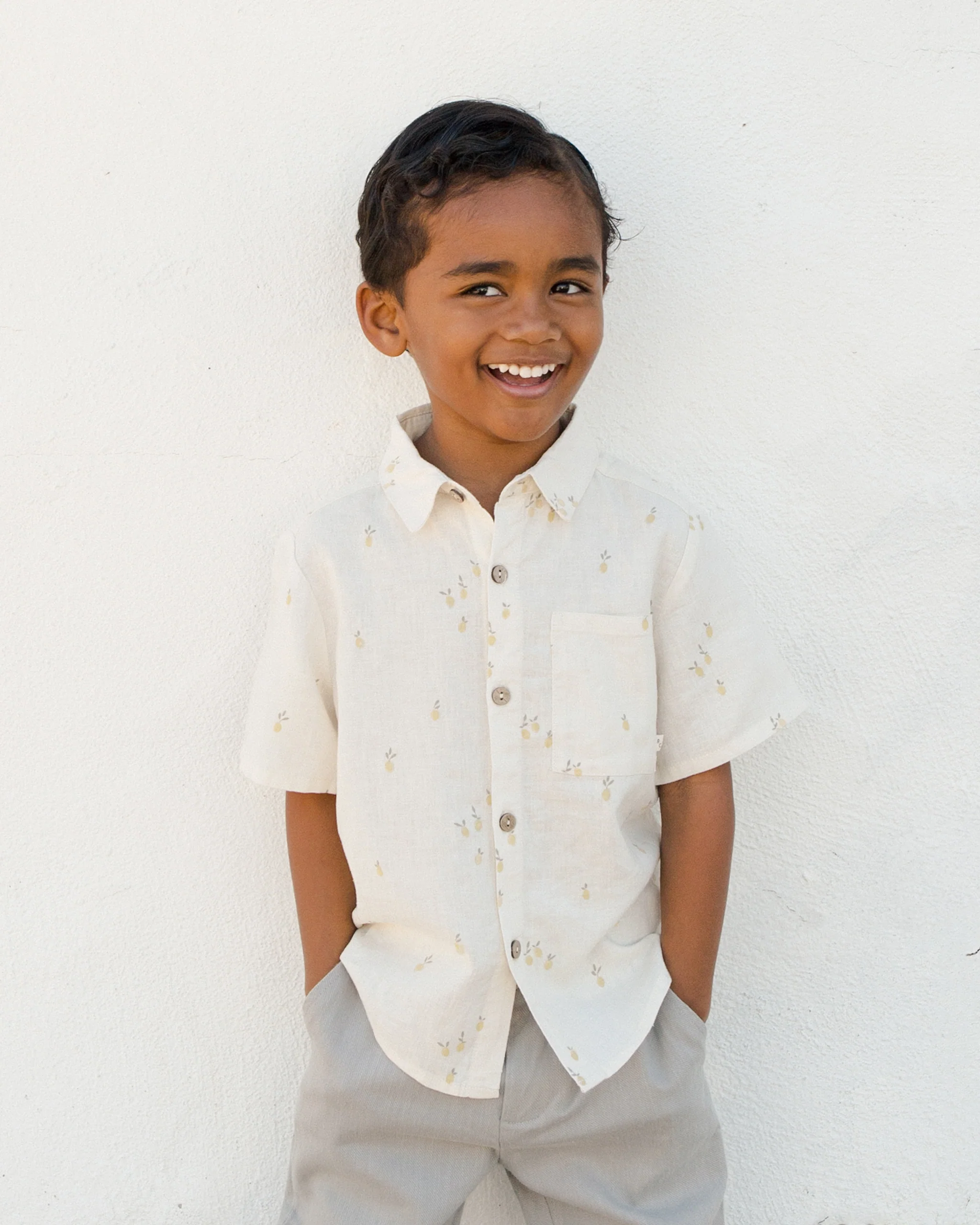 Une chemise boutonnée à manches courtes et col classique pour garçons.