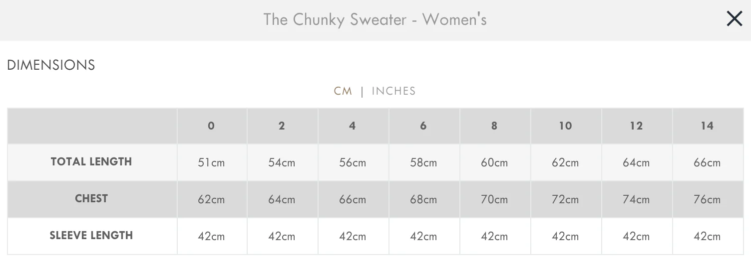 For reference, Amy in our first featured image is 5’6 and is wearing the Chunky Sweater in size US 6 / UK 10.
