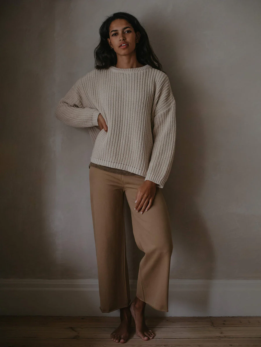 With a relaxed fit, and a chunky ribbed neckline and cuffs, our loose-knit sweater made from 100% organic cotton is a warm hug in a sweater. It truly goes with everything.