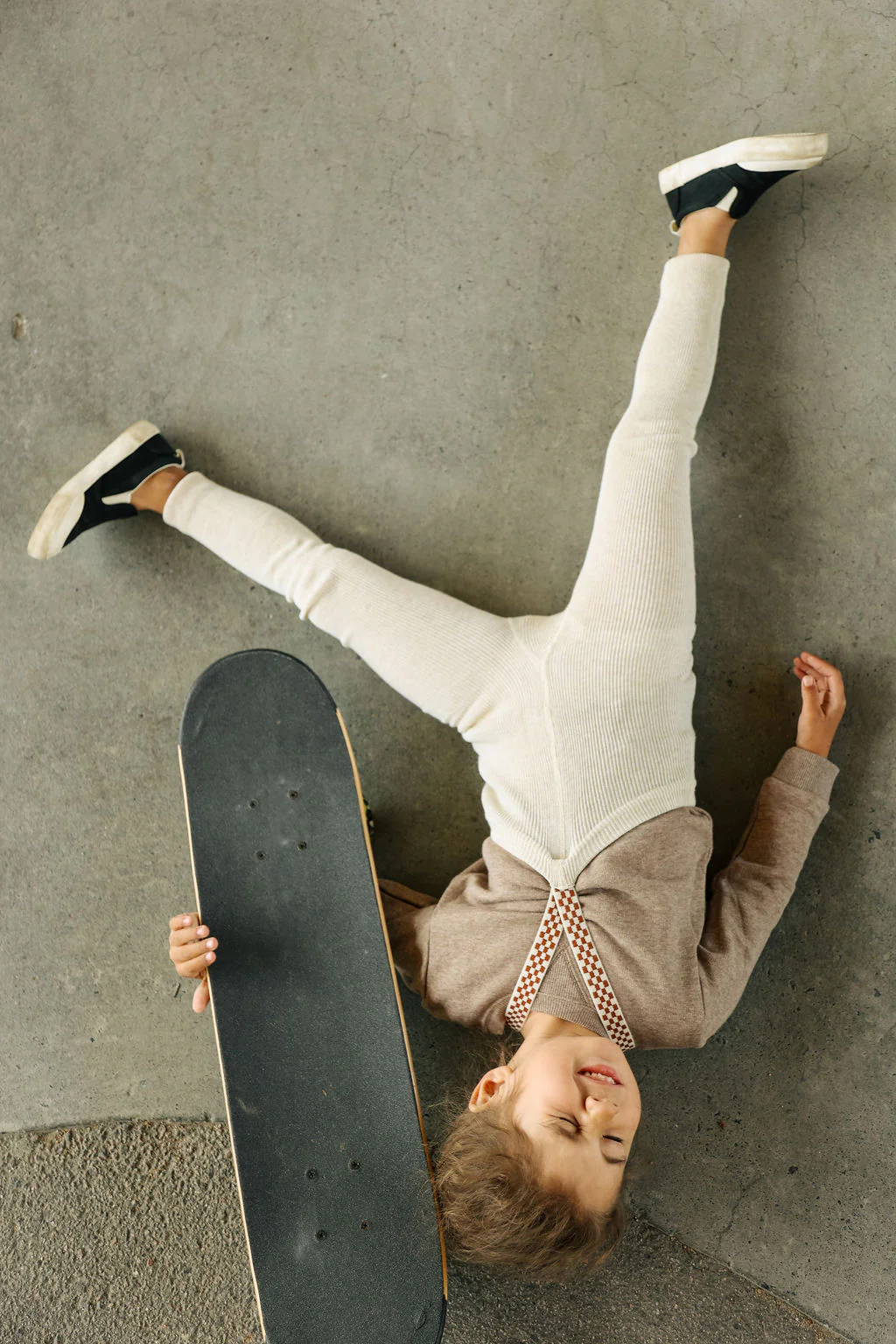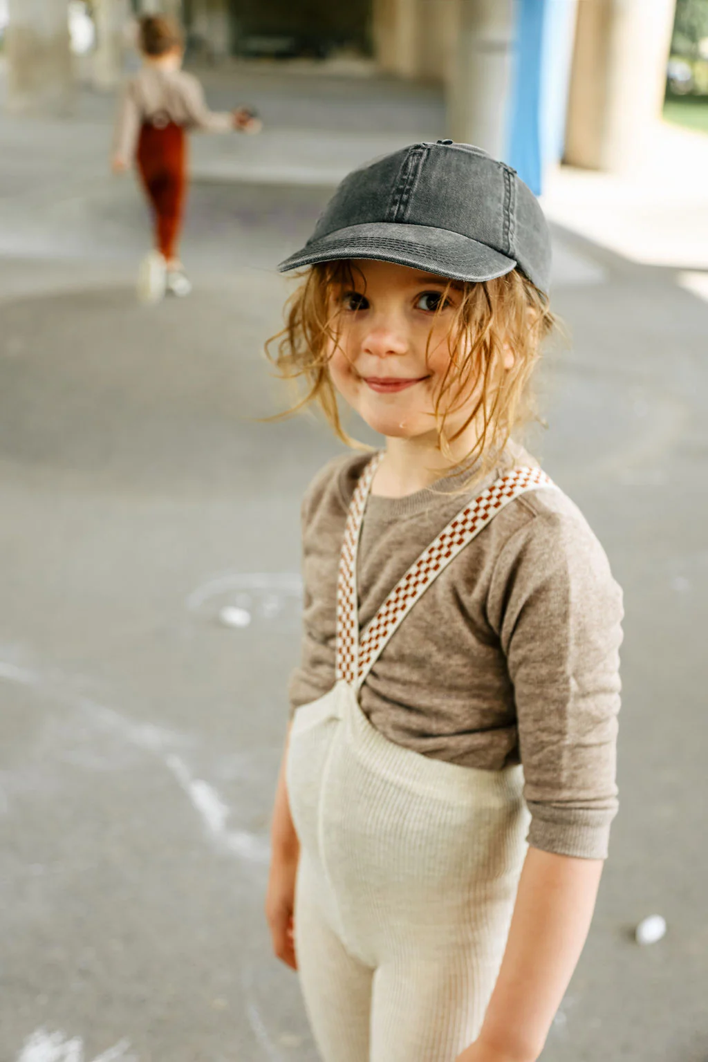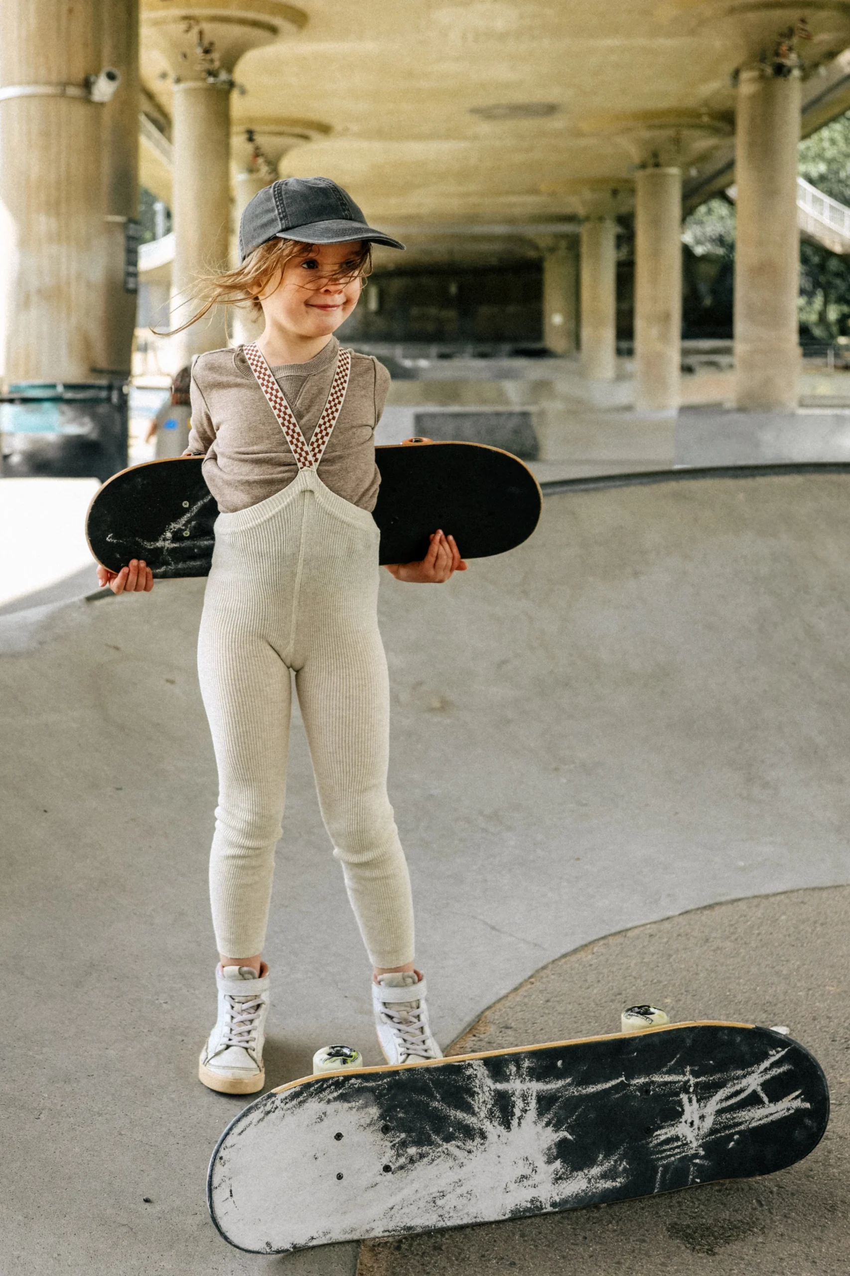 Ce collant côtelé rétro avec bretelles suivra le rythme des bébés et des ptits mosüs les plus actifs.