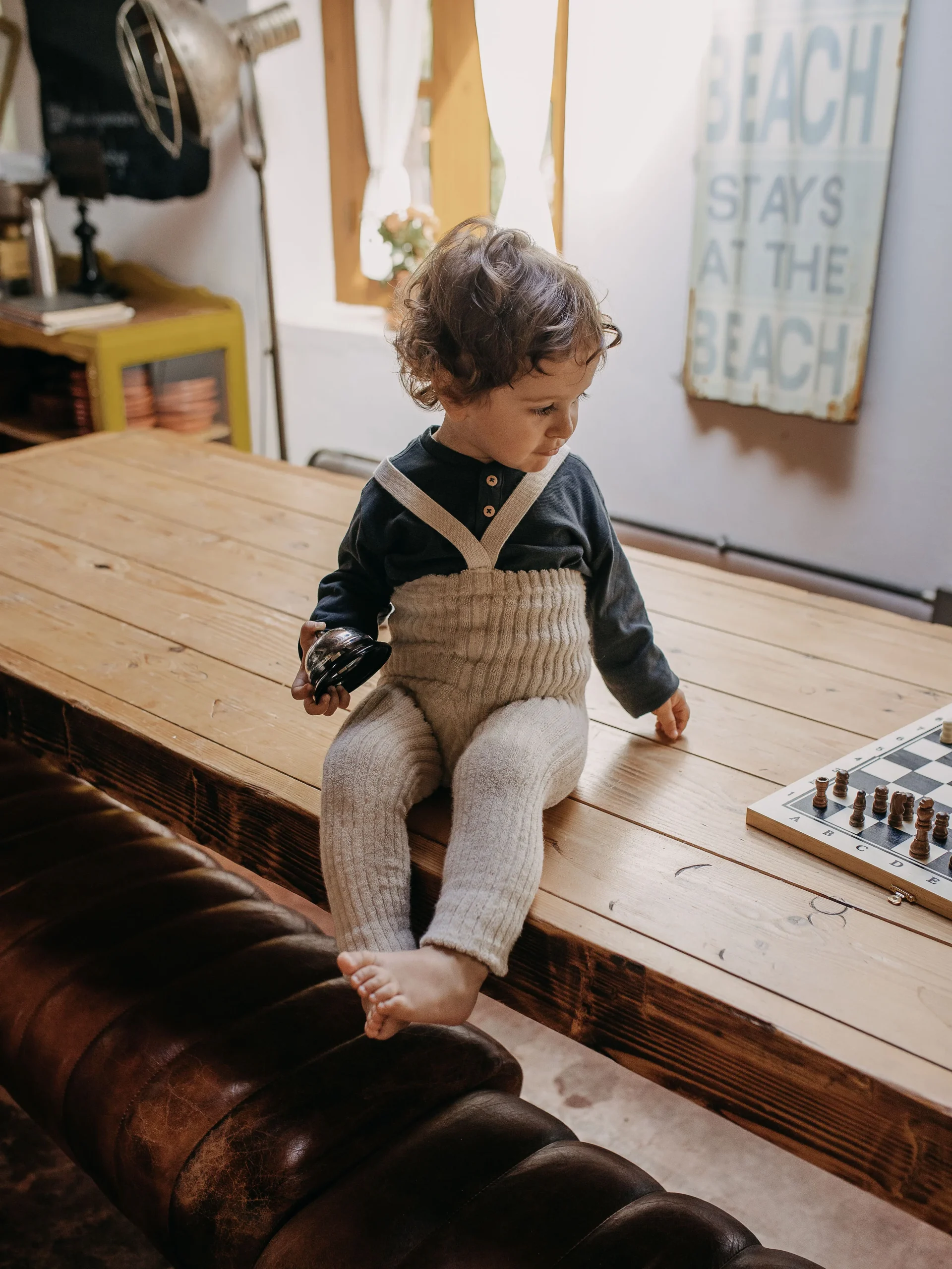 Ce collant côtelé chaud en peluche au look vintage avec bretelles garderont vos ptits mosüs confortables et douillet pendant les aventures hivernales.