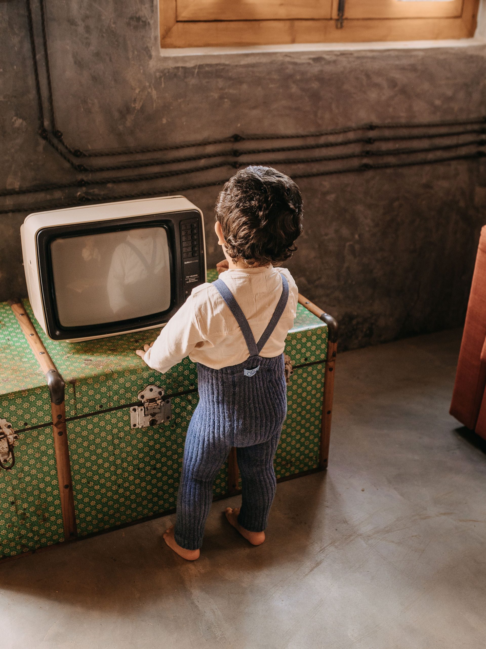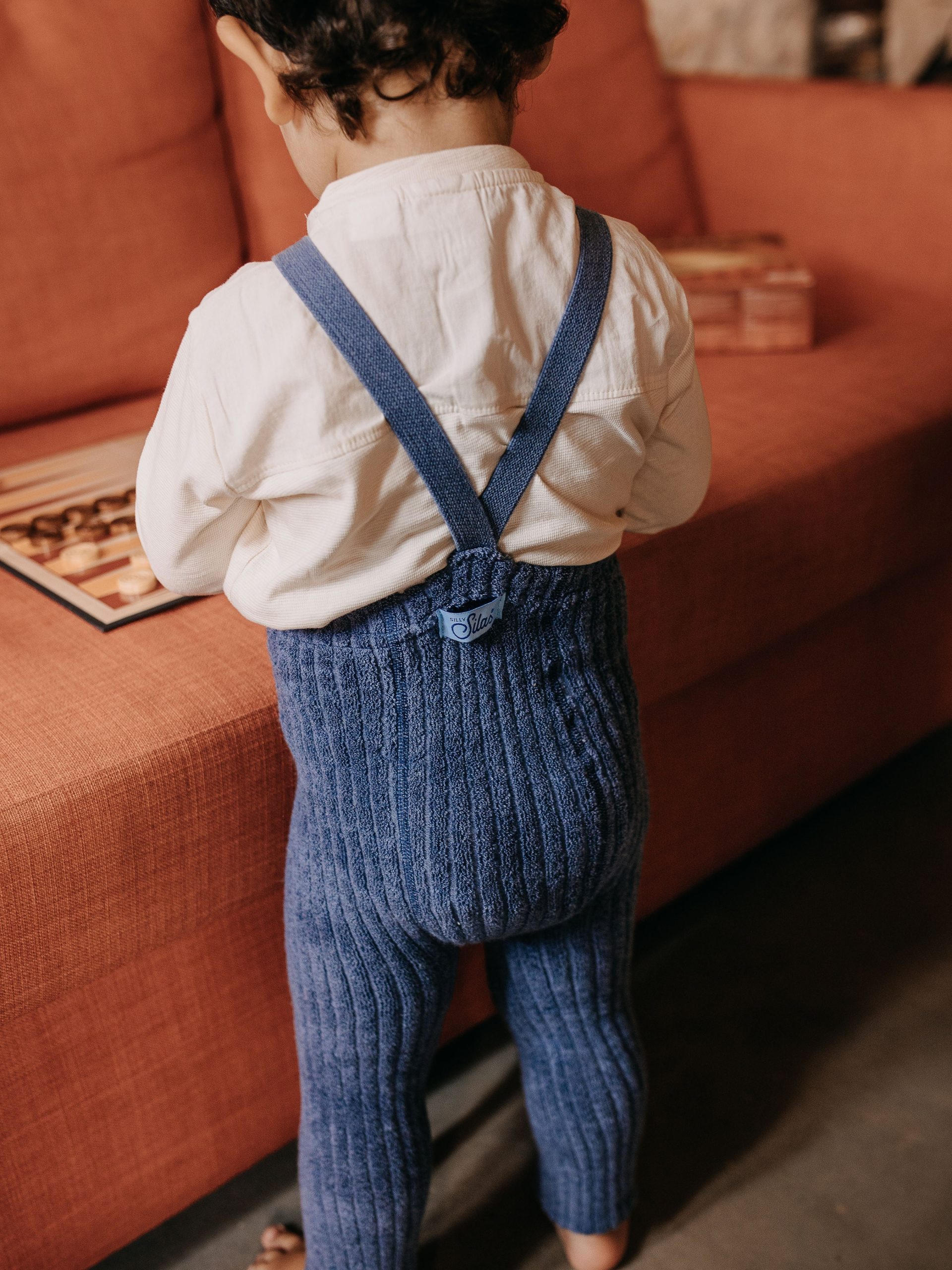 Ce collant côtelé chaud en peluche au look vintage avec bretelles garderont vos ptits mosüs confortables et douillet pendant les aventures hivernales.