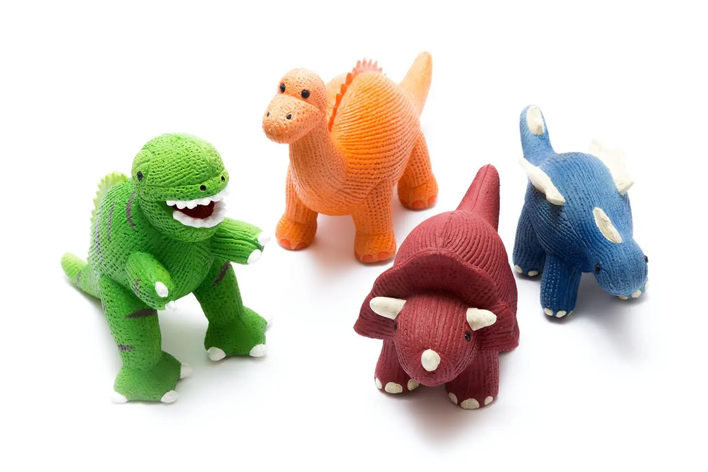 Ces dinos en caoutchouc sont la garantie de jeux sans risque pour les enfants. Sans BPA, phtalates ou autre produit nocif, ces dinos sont un cadeau idéal pour les enfants dès la naissance. Texturés, doux, flexible et avec un choix de coloris joyeux, ils éveilleront les plus petits comme les plus grands.