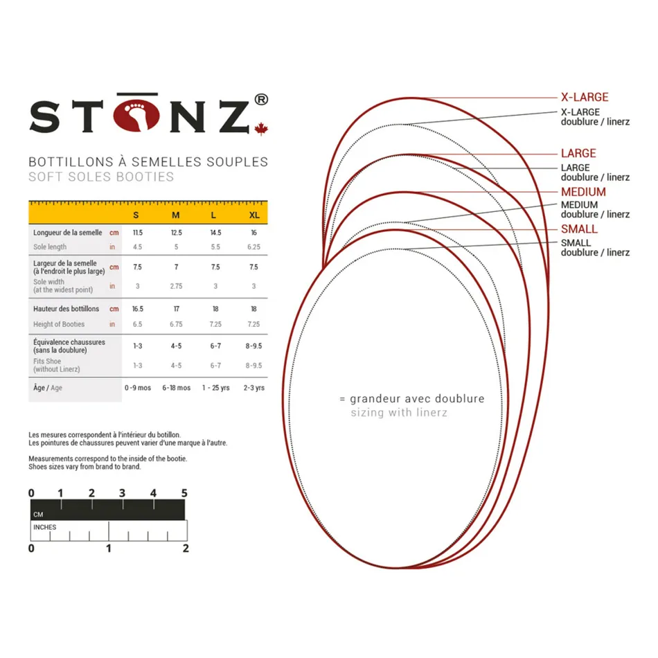 Attention: La doublure prend de l’espace dans la bottine, ce qui la rendra légèrement plus petite. La grandeur de votre doublure doit être la même que celle de votre botte.