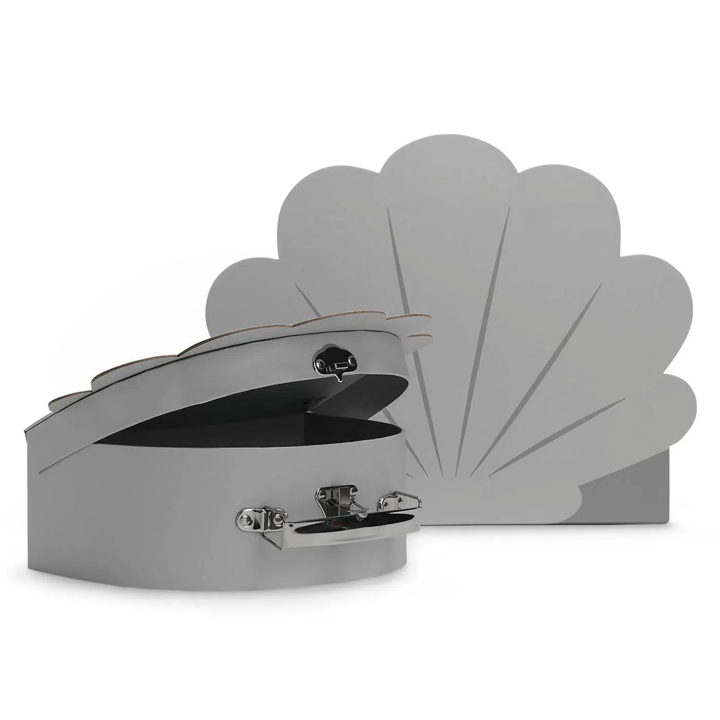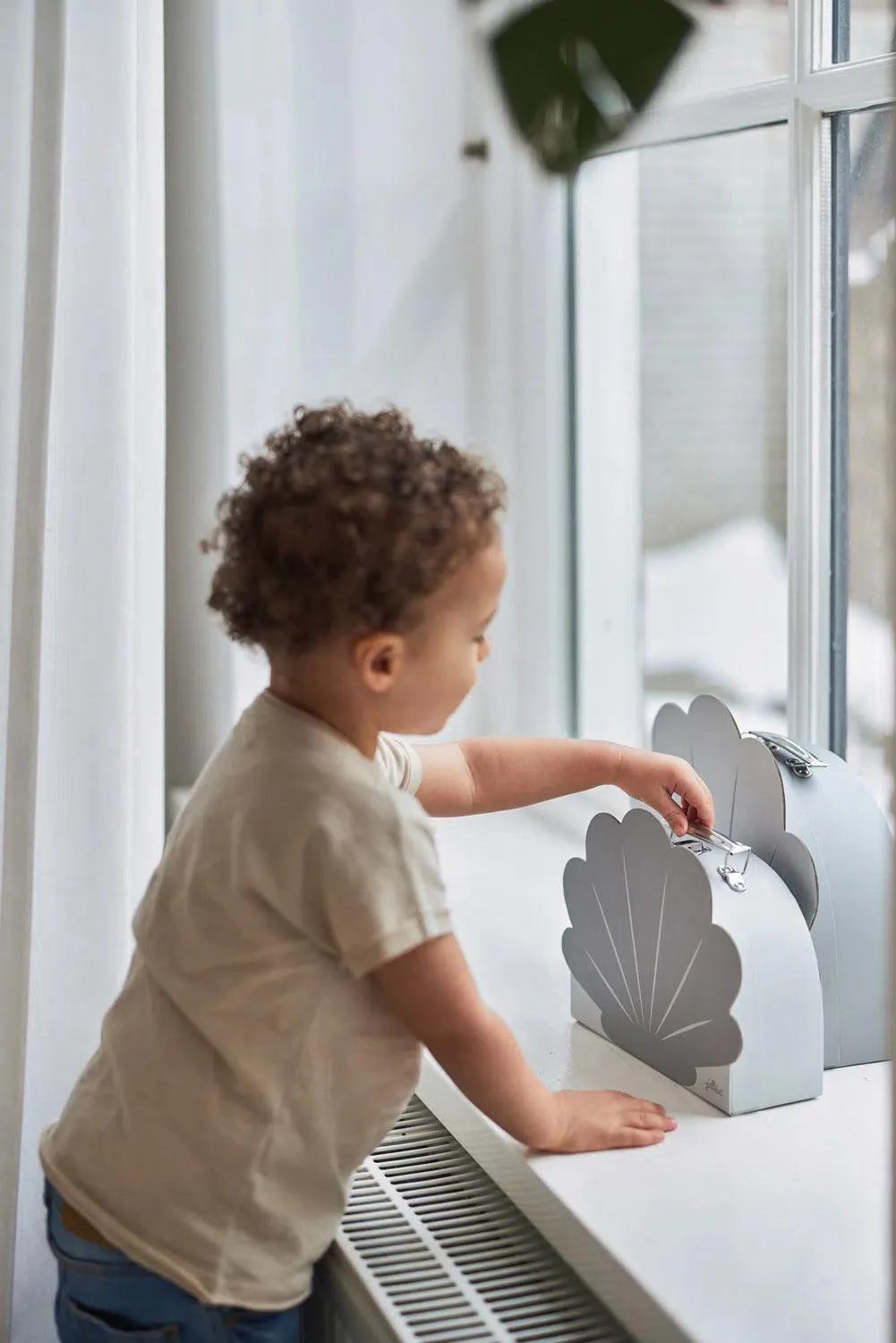 De koffertjes zijn in de vorm van een schelp en staan ook mooi als decoratie in de baby- of kinderkamer. De rustige kleuren combineren met veel stijlen.