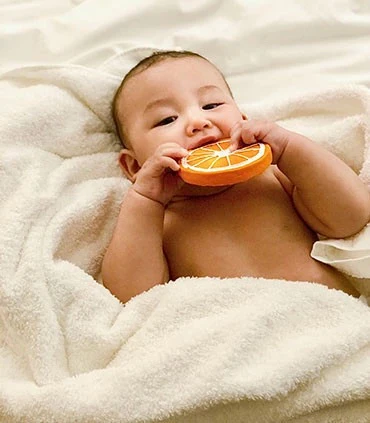 Clementino L’orange est un jouet à croquer pour la dentition, l’heure du bain et le jeu sensoriel. Fabriqué à la main en caoutchouc 100% naturel et peint à la main avec des pigments naturels.