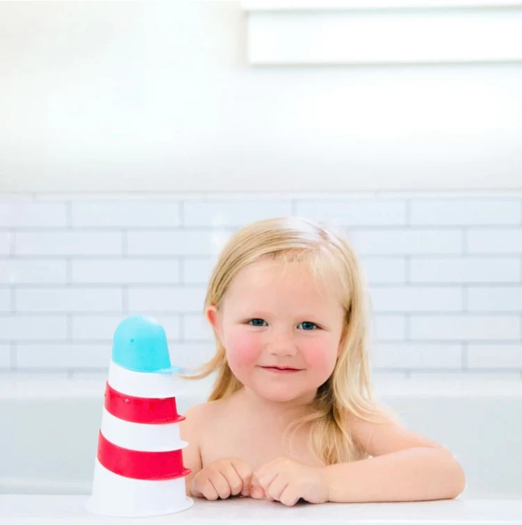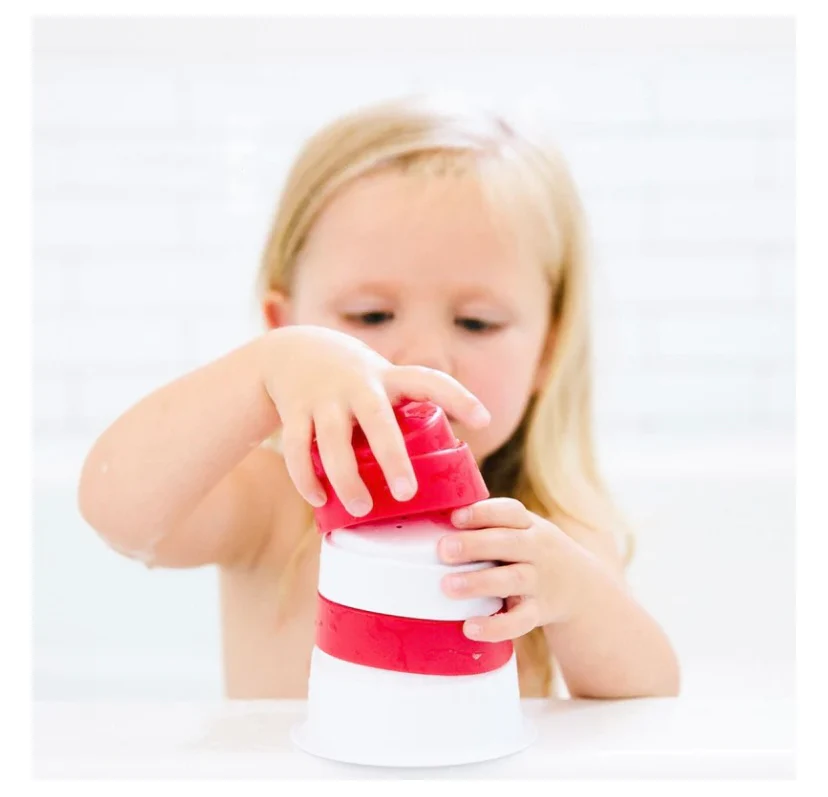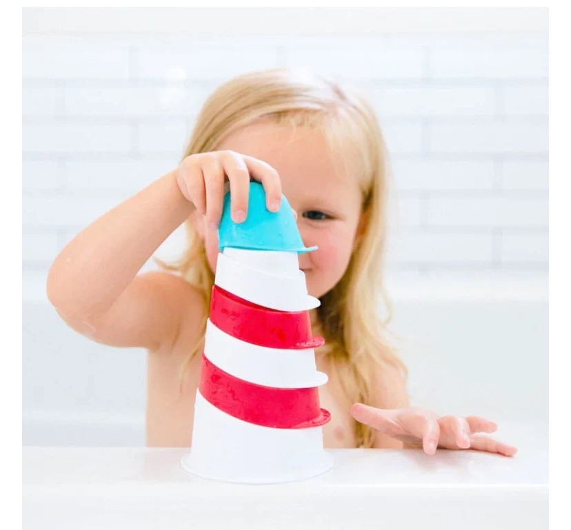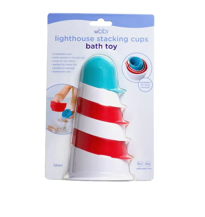 Les gobelets empilables du phare Ubbi disposent d'un ensemble de 6 gobelets empilables qui peuvent être facilement empilés et imbriqués pour le stockage. Il y a un spinner d'eau dans la tasse supérieure et des trous pour l'effet de pluie. Il suffit de plonger dans l'eau et de laisser sortir la pluie.