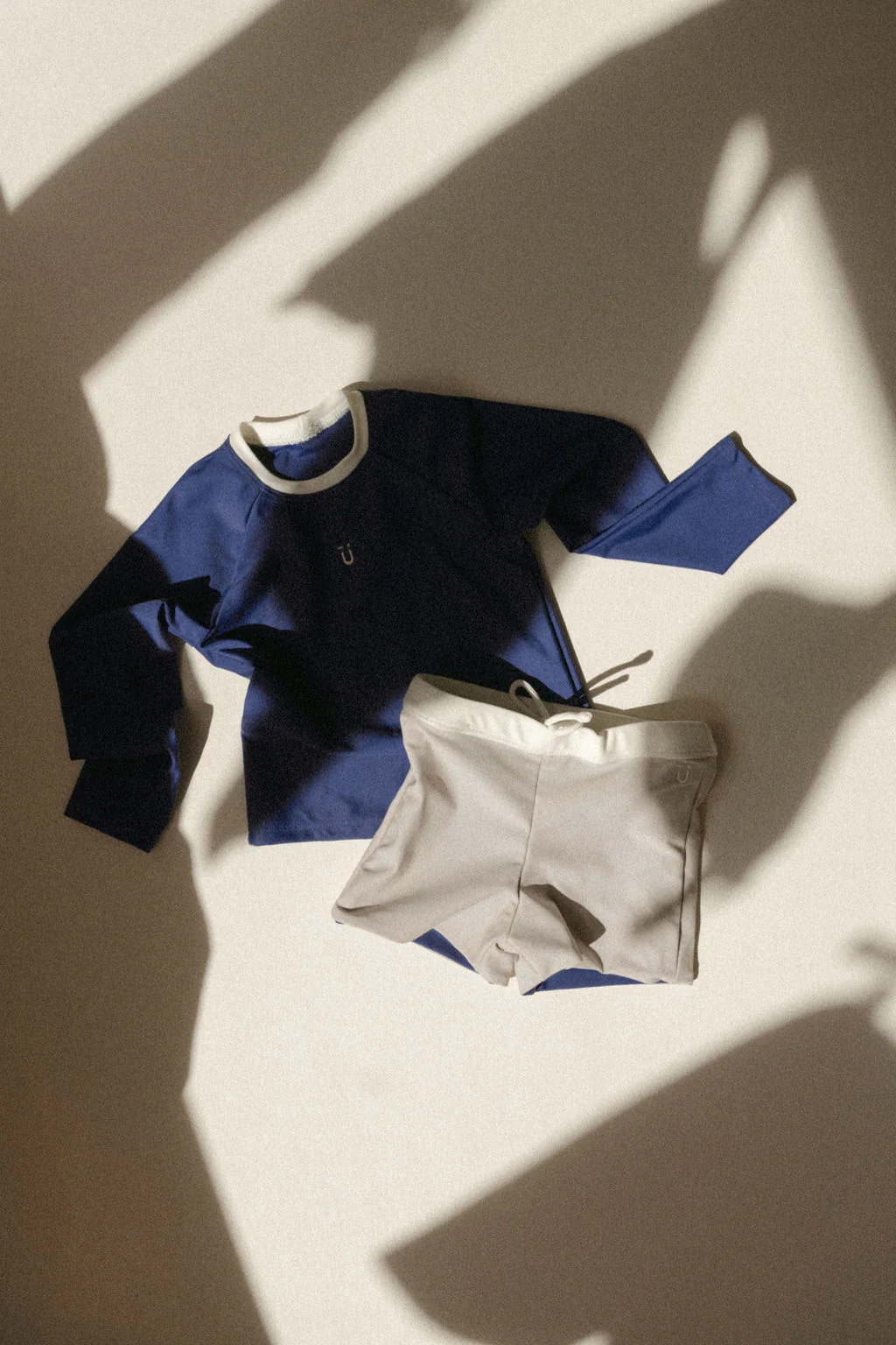 Maillot short réversible ♻️ | Gustave – Marine / Beige