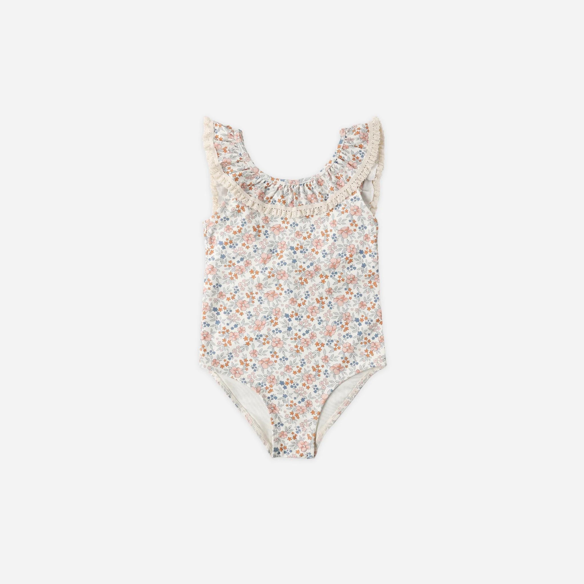 Notre maillot de bain une pièce Margaret est orné d’un ravissant col à volants et de délicates finitions au crochet, pour une touche d’élégance à votre tenue de plage.
