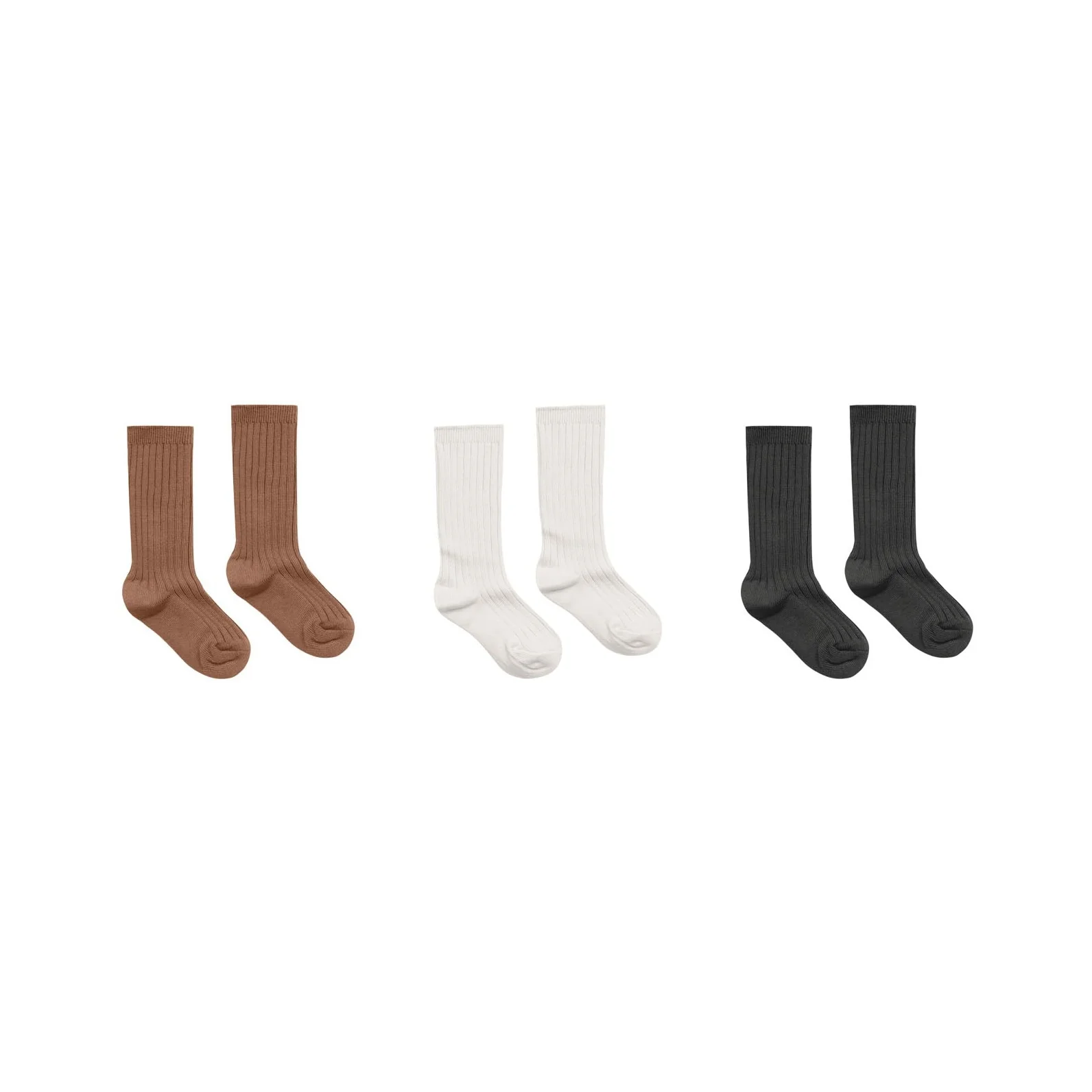 Collants avec pieds en maille côtelée douce et extensible. Ensemble de 3 : cèdre, ivoire, noir Fabriqué en 76 % coton, 22 % nylon, 2 % élasthanne — Footed tights in a soft and stretchy rib knit. Set of 3: Cedar, Ivory, Black Made of 76% Cotton, 22% Nylon, 2% Spandex