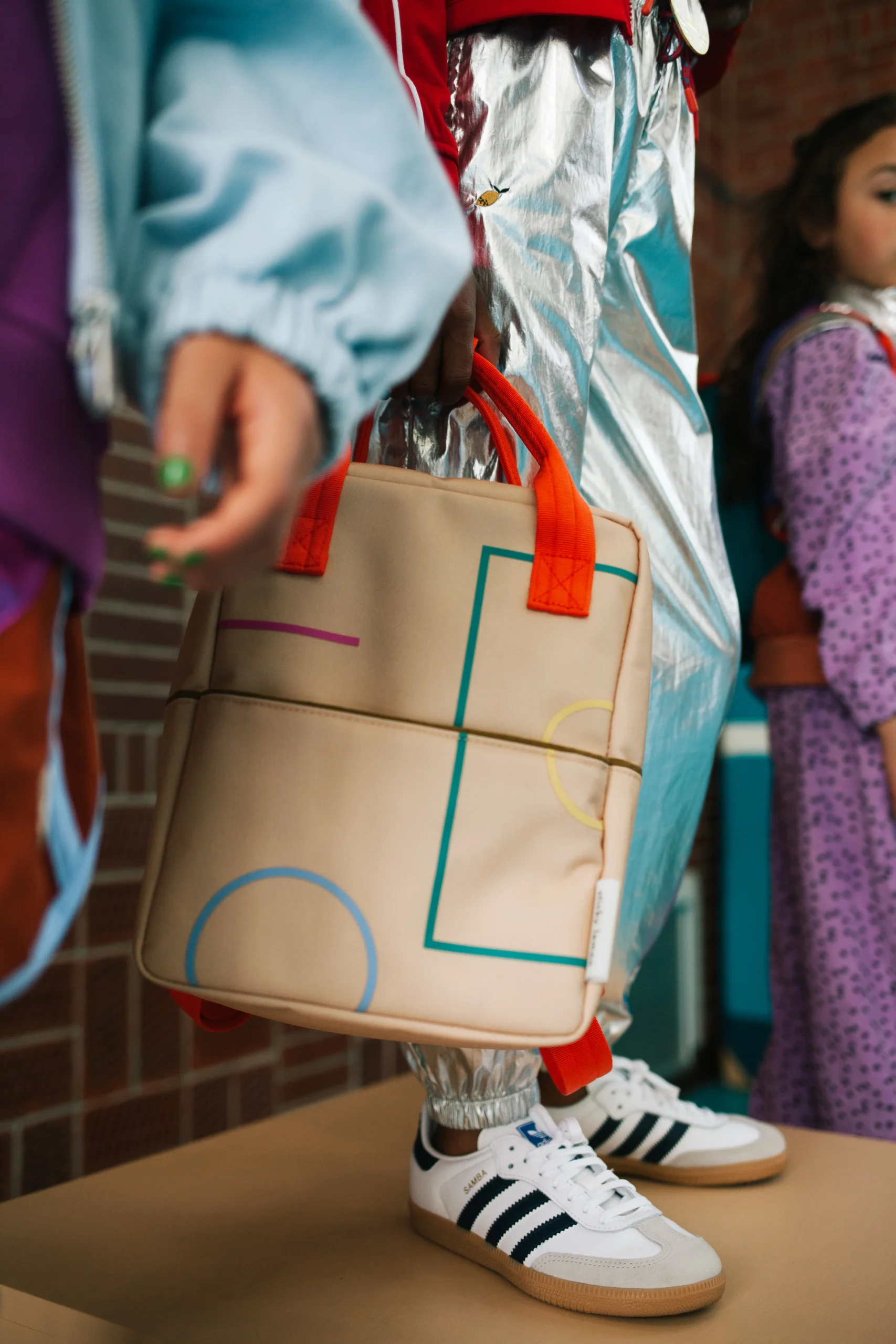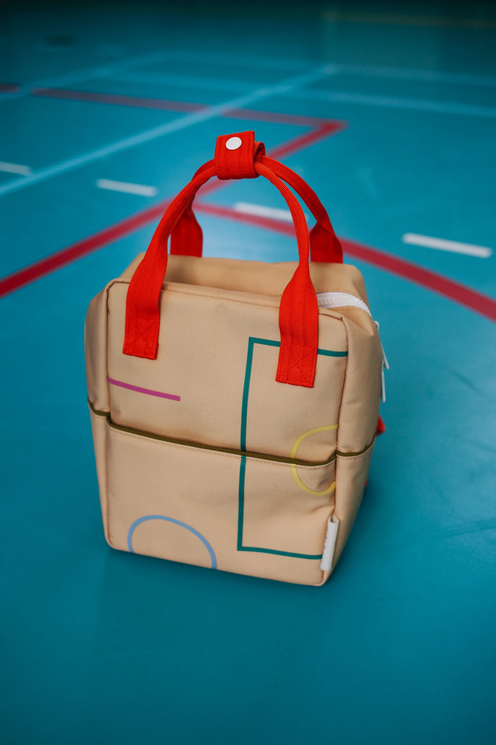 Let’s get to the court! Look at this cool small backpack, a wink to the classic gym floor. It comes in the colour gym floor and has rugby red coloured, adjustable handles