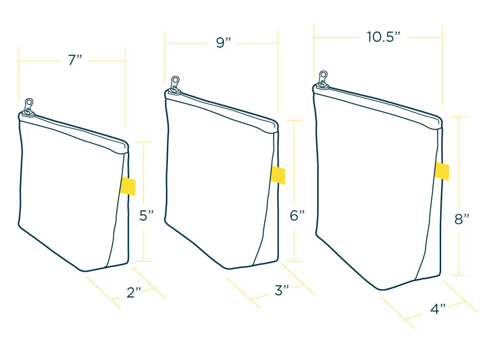 Pochette polyvalente et adorable, disponible en trois tailles différentes, idéales pour tous vos essentiels du quotidien. Clés, fils, cosmétiques ou chaussettes supplémentaires : ces pochettes zippées vous permettent de tout garder à portée de main.