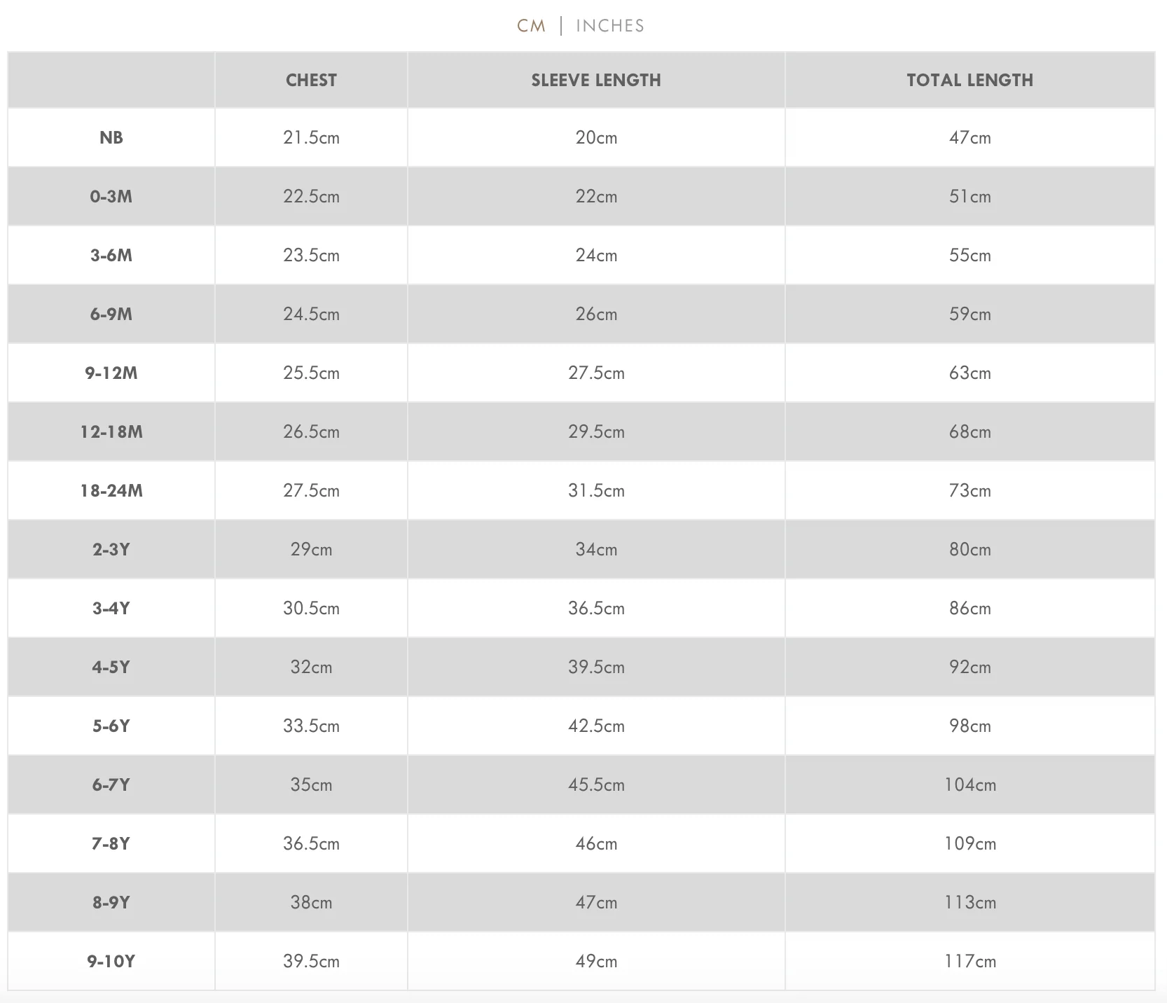 | Taille | 0-3 mois, 12-18 mois, 18-24 mois, 2-3 ans, 3-4 ans, 3-6 mois, 4-5 ans, 5-6 ans, 6-7 ans, 6-9 mois, 7-8 ans, 8-9 ans, 9-10 ans, 9-12 mois |