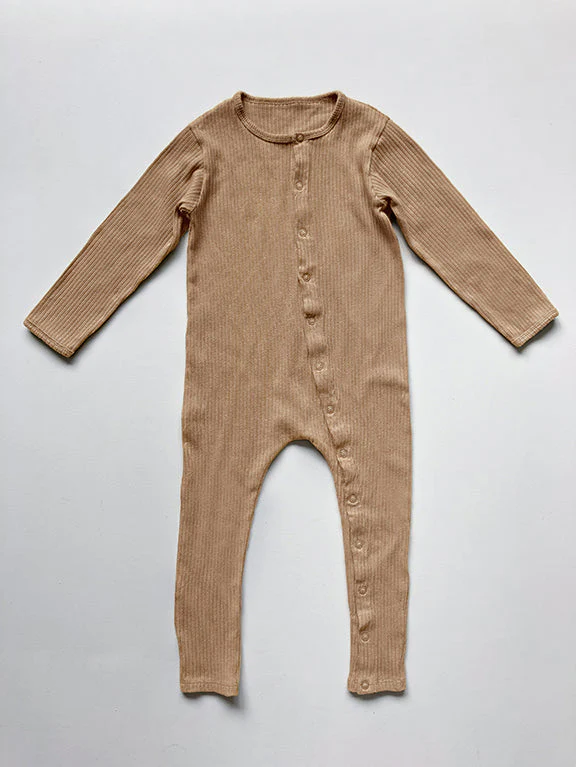 Classic and timeless. This ribbed version is made from the softest ribbed organic cotton. Designed for cozy slumbers, this PJ is an instant heirloom piece, easily passed between siblings and future generations. Features simple snaps, and includes feet and fold over hand covers on sizes 0-12 months.