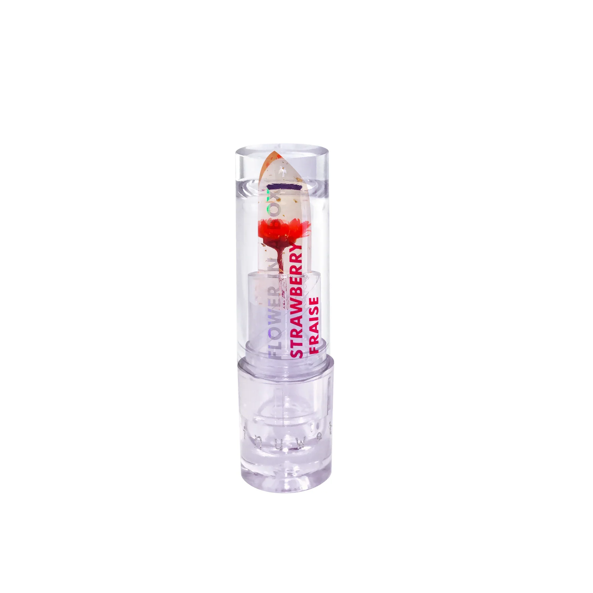 Ce rouge à lèvres brillant est vraiment unique avec sa véritable fleur à l’intérieur et son parfum de fraise.