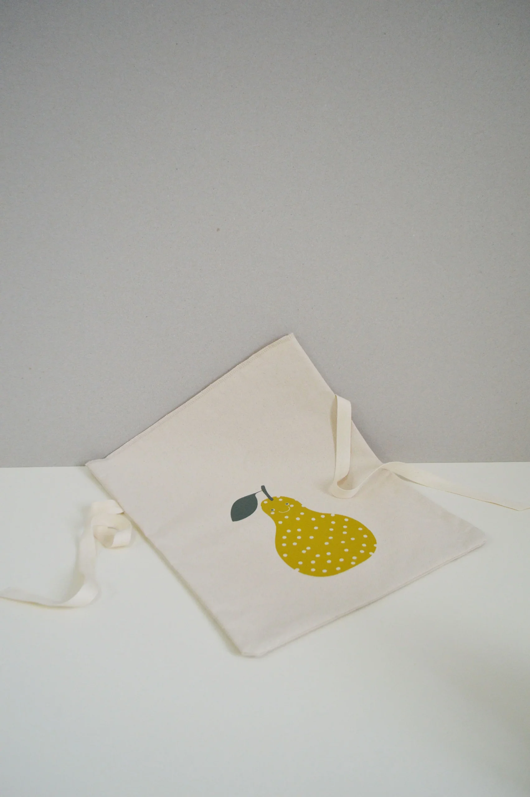 Dimension: 34 X 42 cm, 2 ribbons ( sew on the bag) to close it.