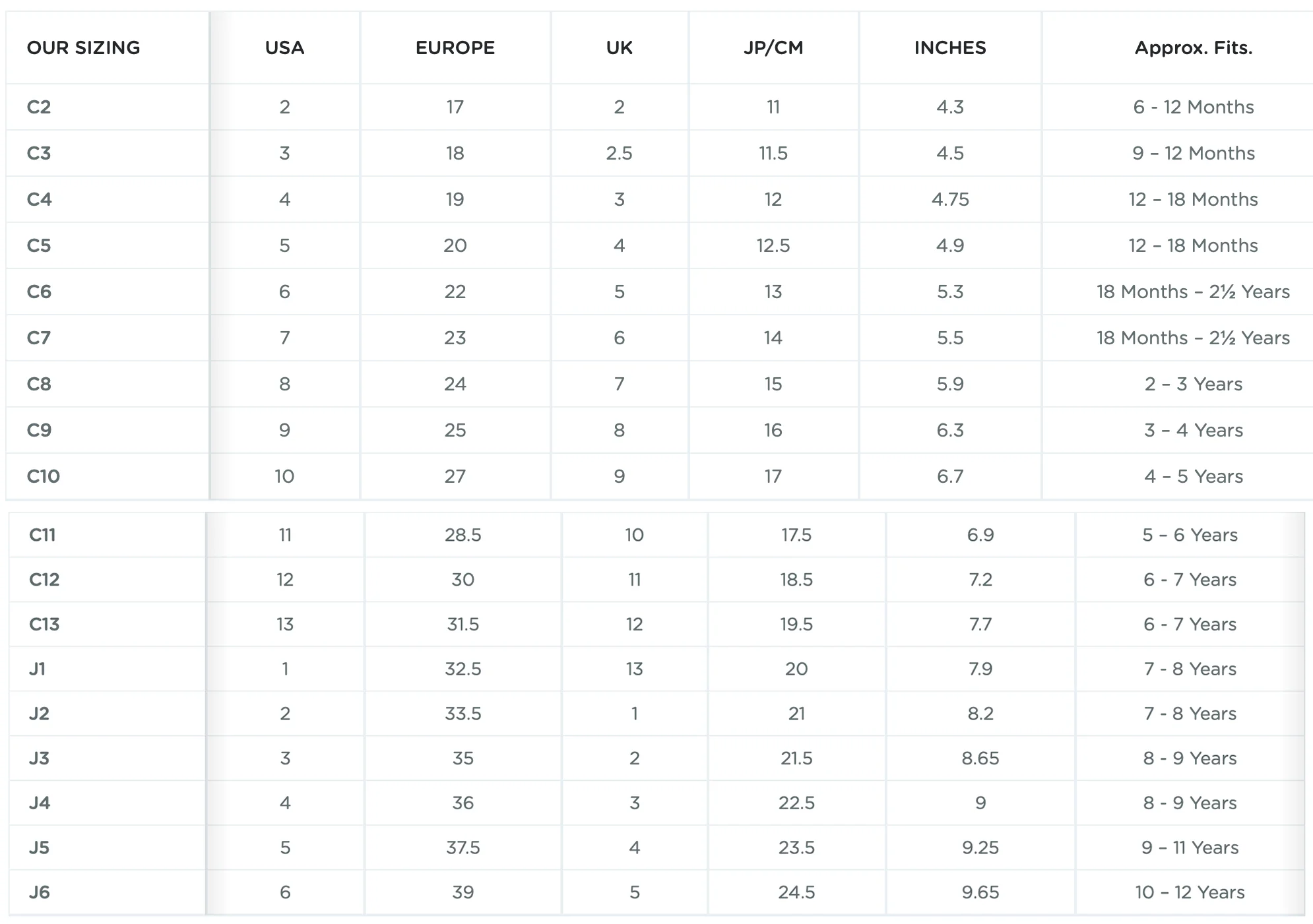 👉🏼 We recommend taking about ~ 1cm bigger than their feet (they must fit until fall).