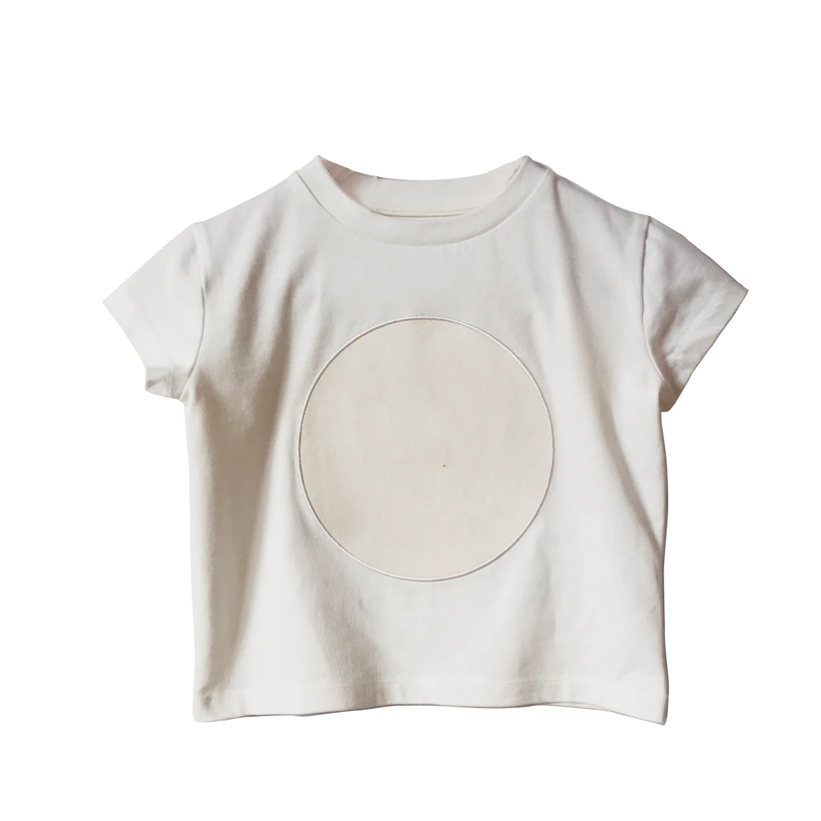 Very soft t-shirt with a scratchable area (very soft too!) on which the child can add the patches of his choice.