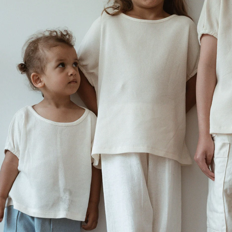 undyed organic cotton waffle, milled in canada. the marcona tee is named for its resemblance to the beloved spanish almond with it’s creamy, natural hue.