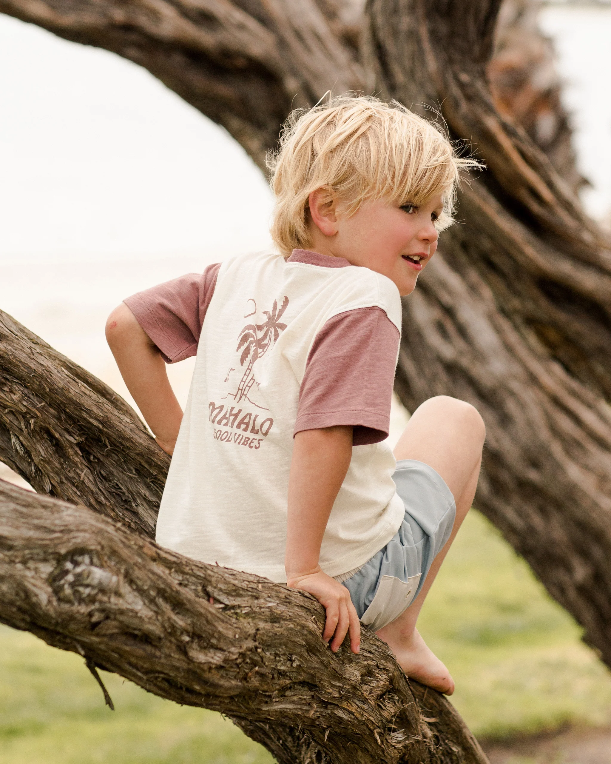 This relaxed boxy fit tee is made with a soft cotton slub fabric for comfort and contrast sleeves.