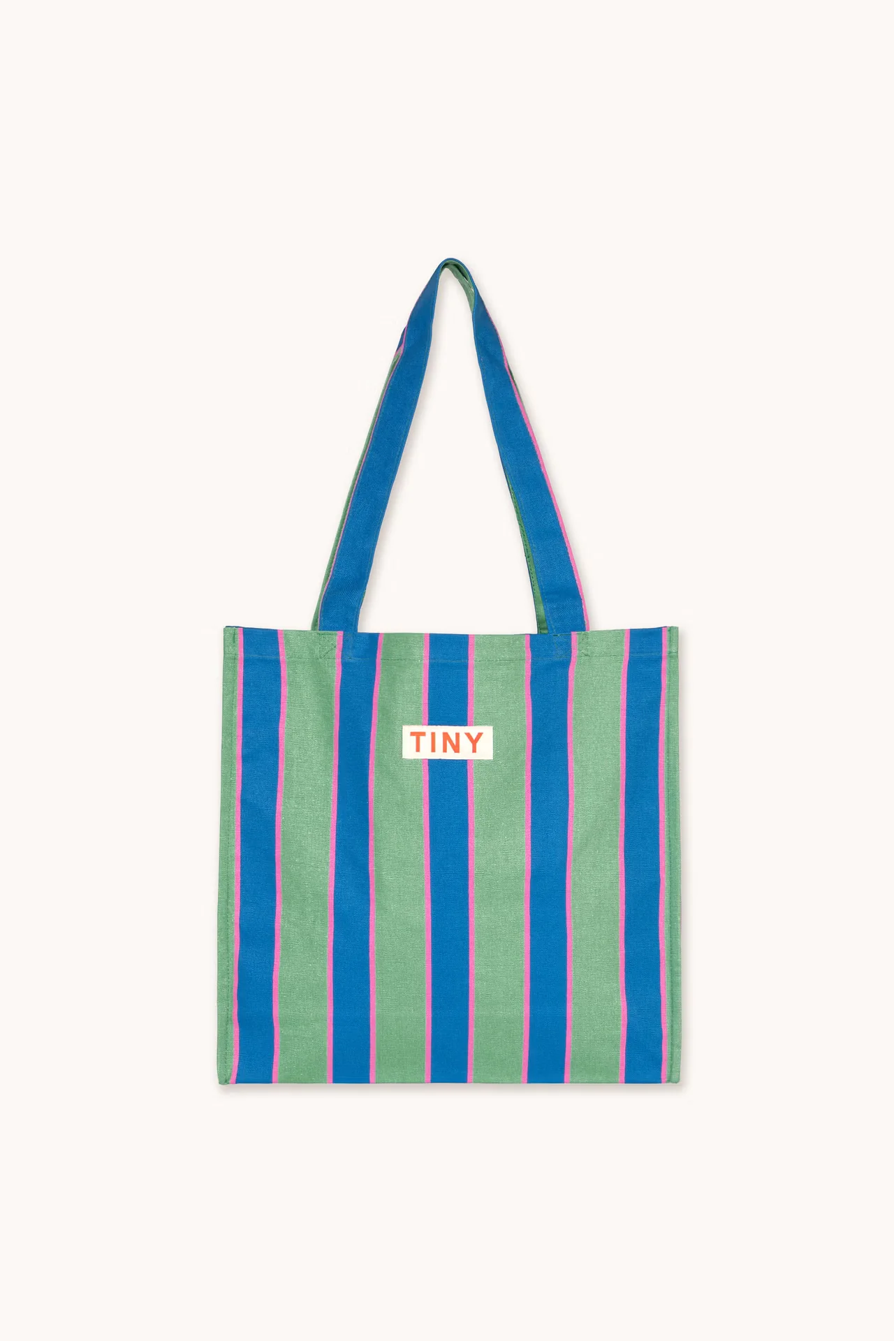 Confectionné en tissu robuste à rayures rétro sur fond émeraude, ce cabas est doté de larges anses pour un porté main ou épaule confortable. Son intérieur spacieux vous permettra d’emporter tous vos essentiels du quotidien. Le logo TINY, discrètement placé en haut du sac, lui confère une touche distinctive.