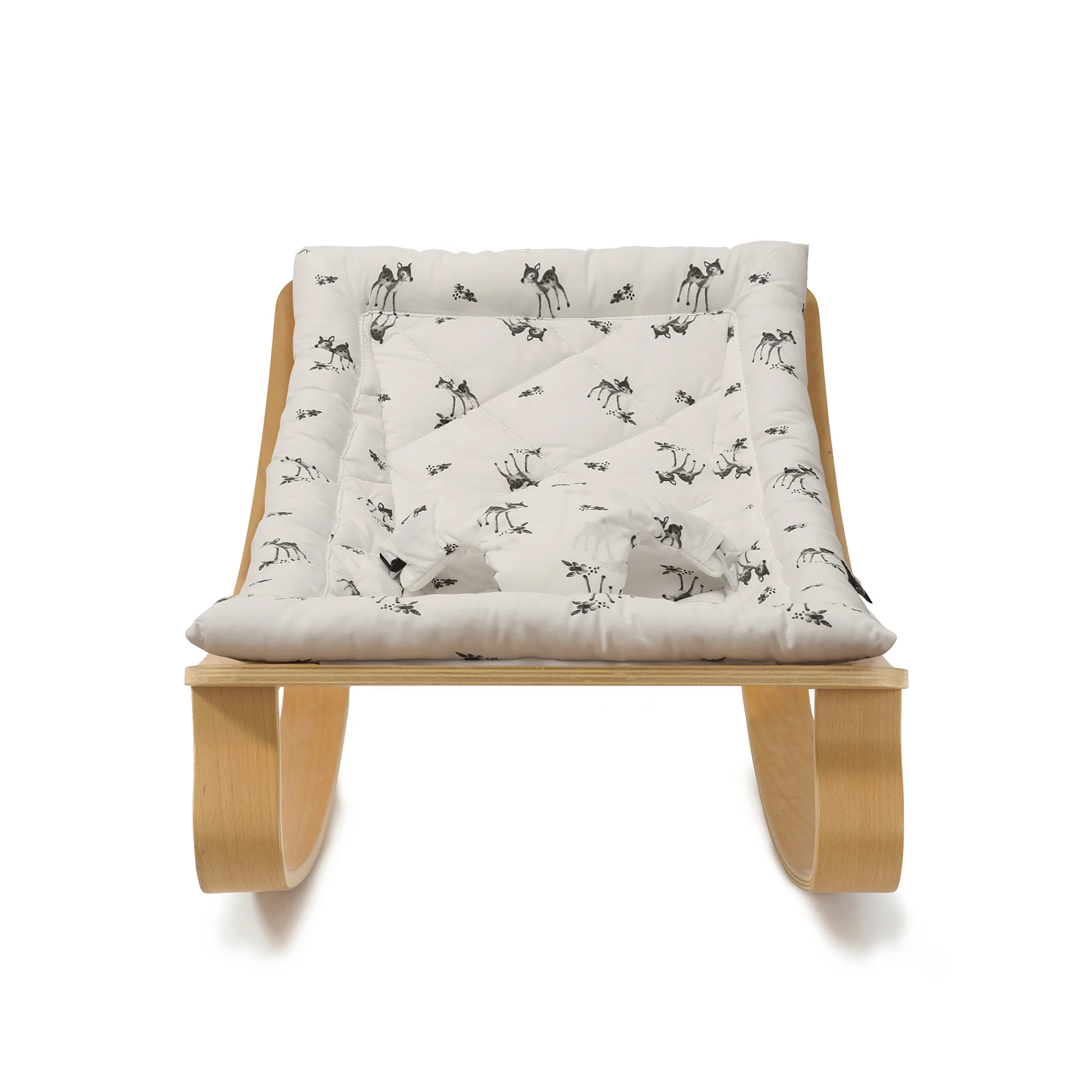 Sa conception en bois et son design contrastent avec les meubles pour bébé classiques. Son balancement naturel suit en douceur les mouvements des bébés.