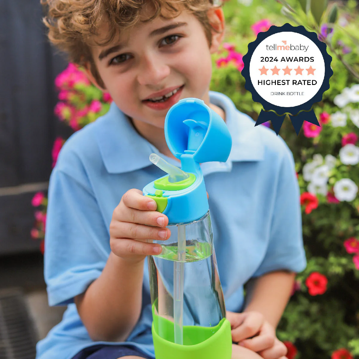 Le bouton-poussoir permet d’ouvrir le couvercle, ce qui garantit l’hygiène des pailles lorsqu’elles sont fermées et ne s’égare jamais. Le bouchon de paille à valve anti-éclaboussures empêche les déversements accidentels. La poignée robuste permet aux enfants de la transporter facilement et de la sortir de leur sac d’école.