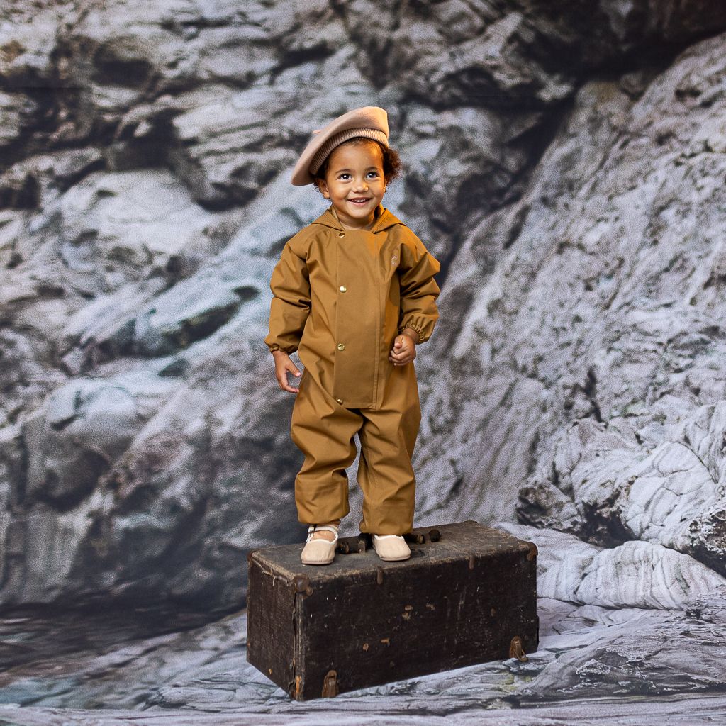 Le une-pièce est pour nos plus petits explorateurs. Offrant une couverture de la tête aux chevilles, le Onesie est conçu avec une capuche attachée spacieuse permettant des couches chaudes pendant les saisons plus froides et la circulation de l’air pendant les mois chauds. Les poignets et les chevilles légèrement élastiques maintiennent les bras et les jambes bien ajustés. Un rabat avant offre une couverture supplémentaire sur les boutons-pression en laiton. Le Onesie est une solution pratique et adorable pour les familles désireuses d’initier leurs petits aux joies de la nature, quel que soit le temps !